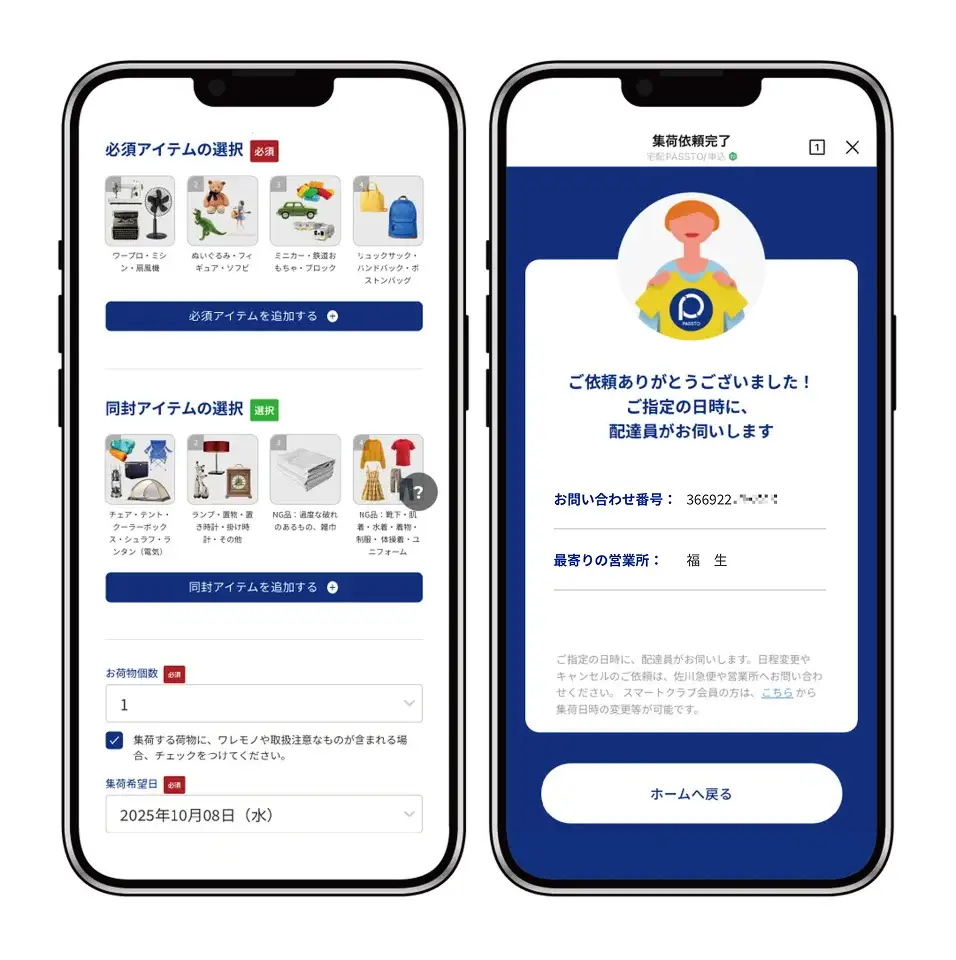 自宅にいながら、スマホ操作だけで集荷依頼まで