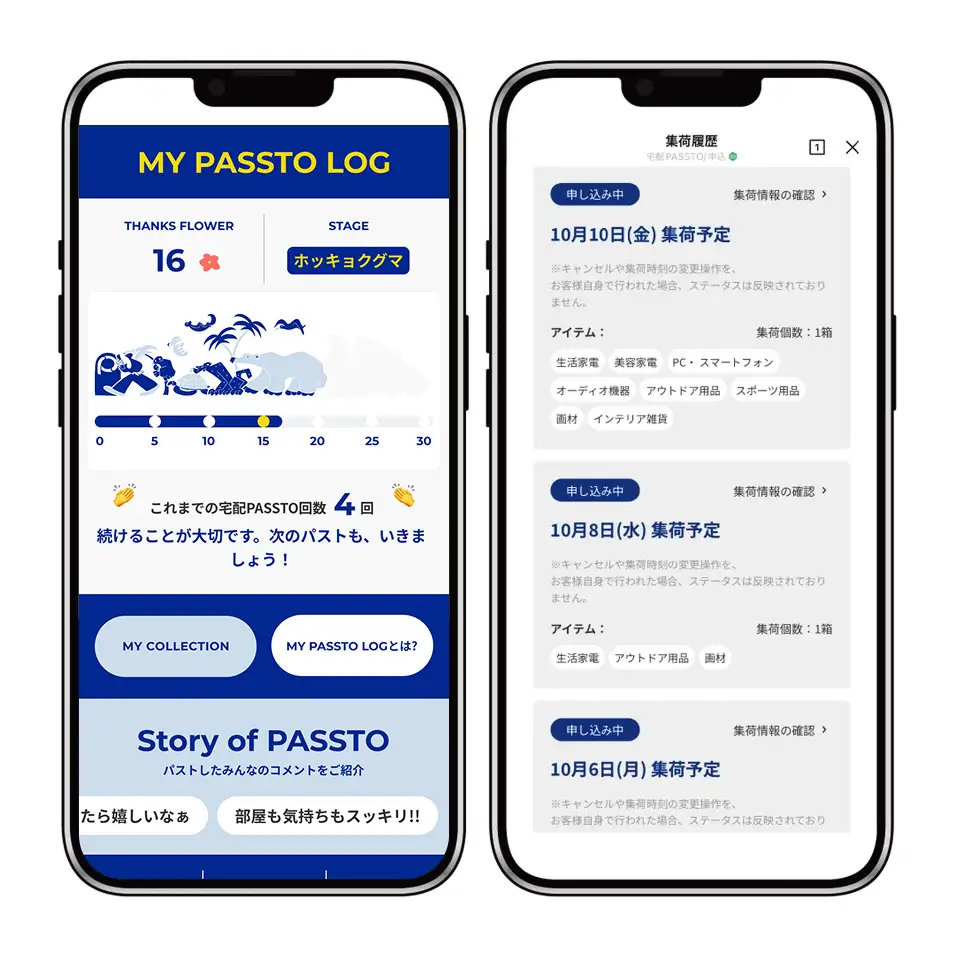 今回の取り組みでは、LINE上で申込から集荷までをシームレスに完結できるだけでなく、手放した回数やアイテムを「見える化」することで、一人ひとりが楽しみながらサステナブルな行動を続けられる体験を目指しました。